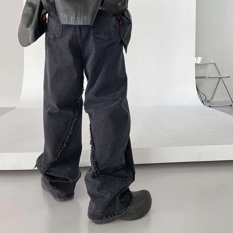 befohand Jun.韓國連線 日系 剪裁 刷鬚 設計款 微喇叭 牛仔褲 牛仔長褲